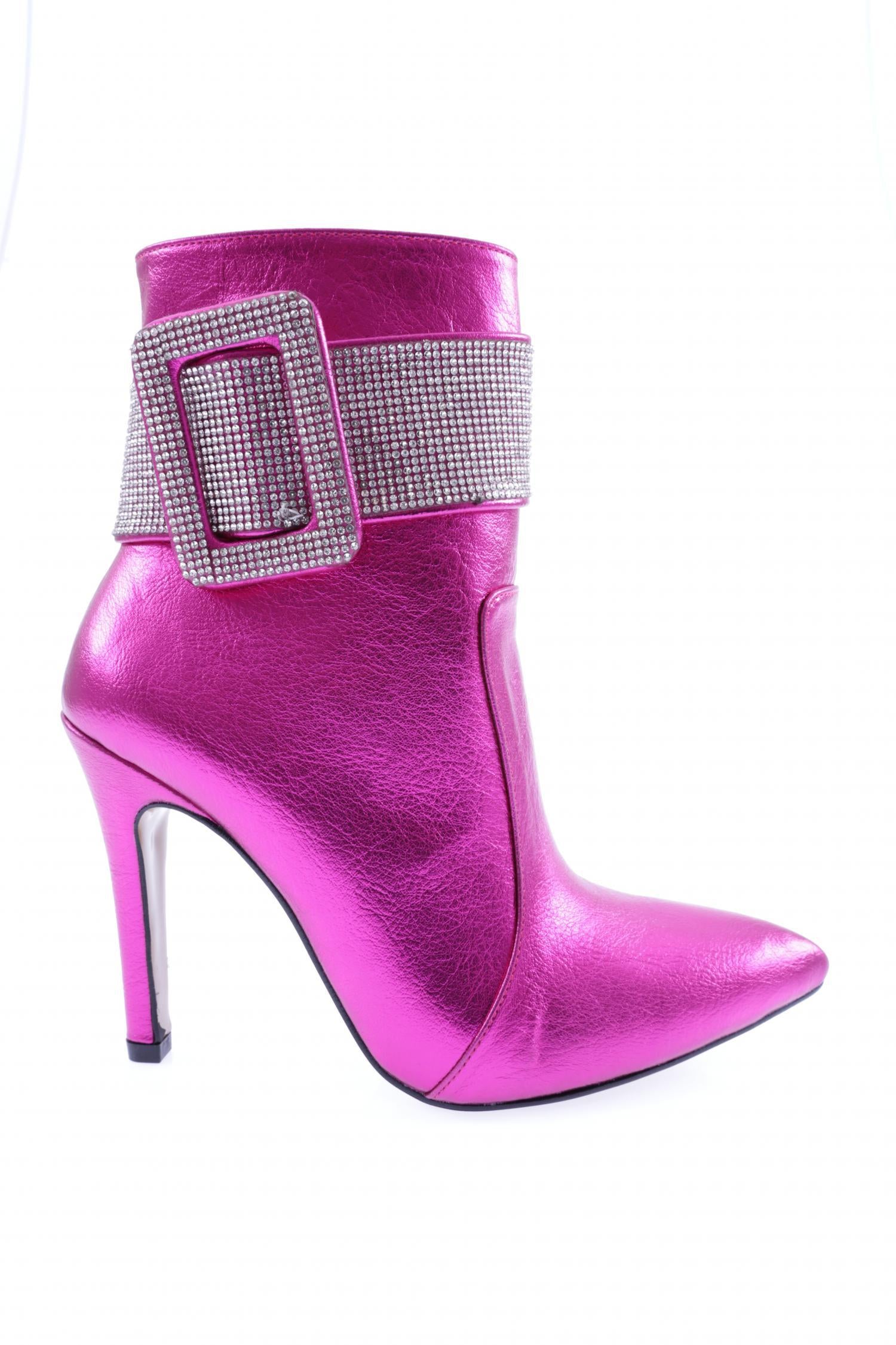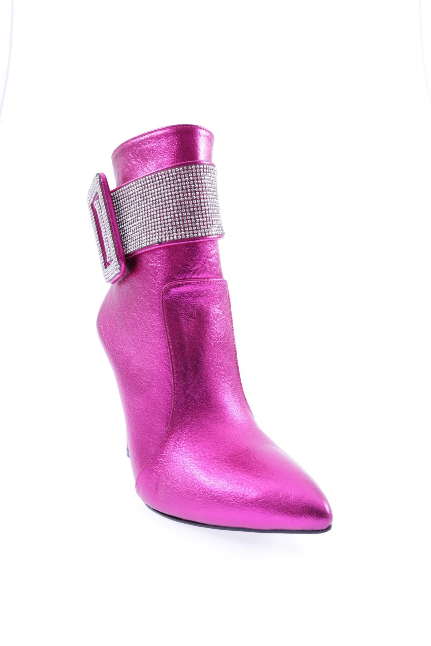 Kadın Sivri Burun Kristal Taşlı Kemer Tokalı İnce Topuklu Bot 53693247