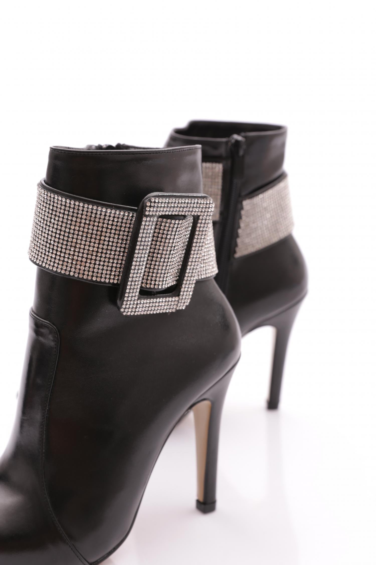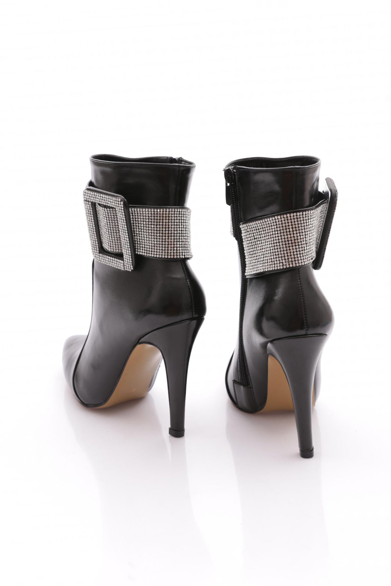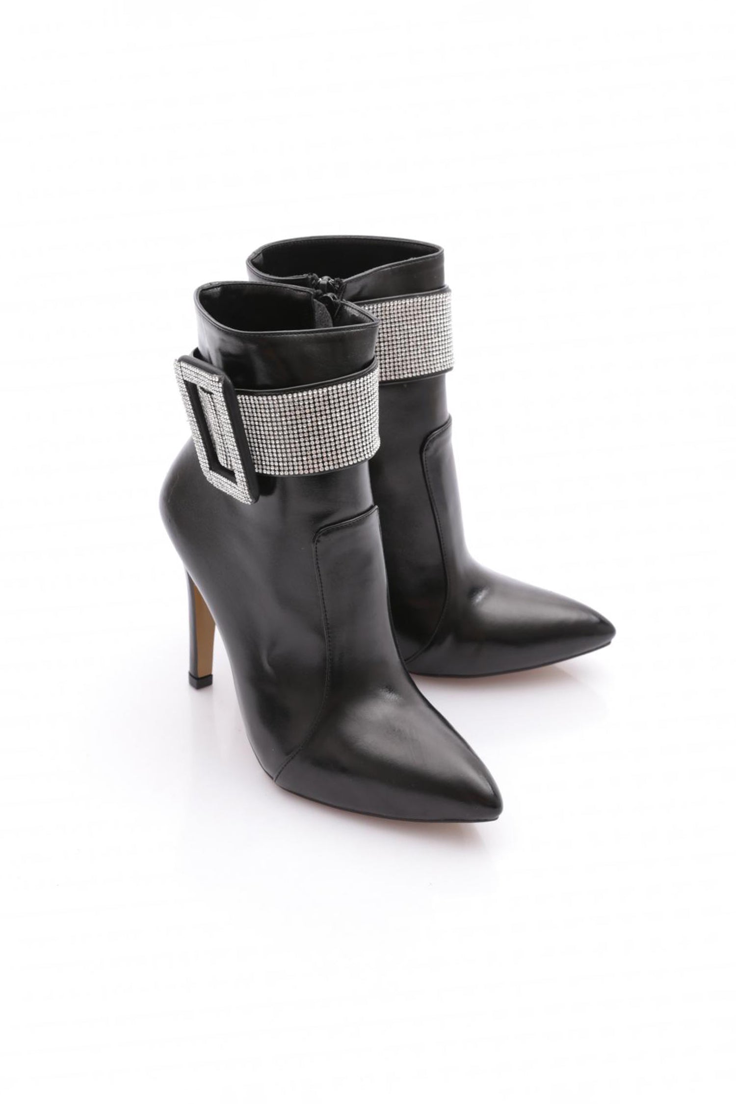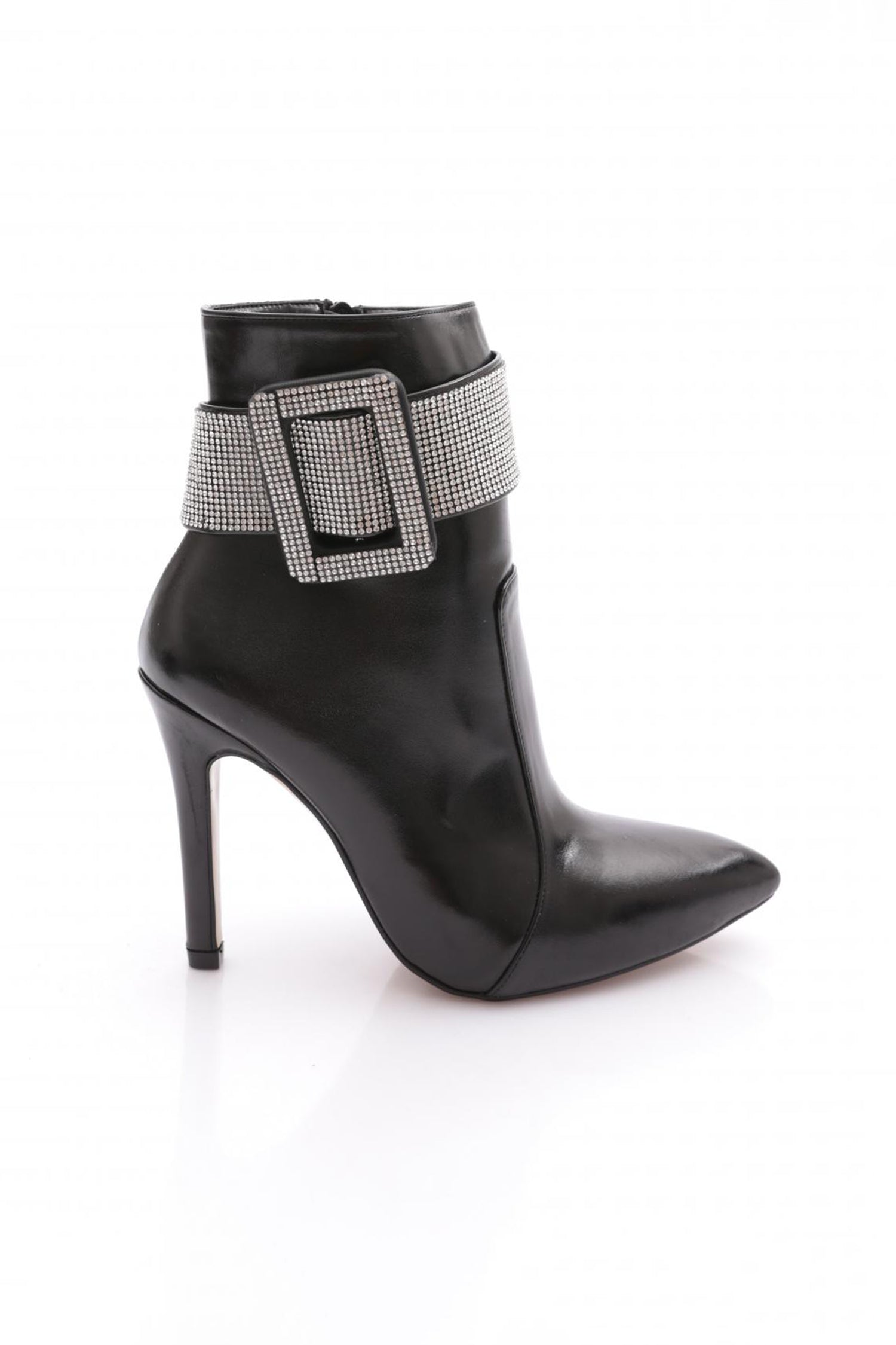 Kadın Sivri Burun Kristal Taşlı Kemer Tokalı İnce Topuklu Bot 53693247