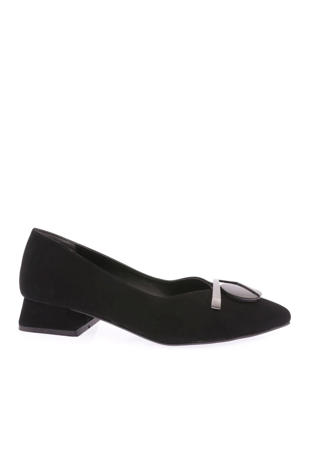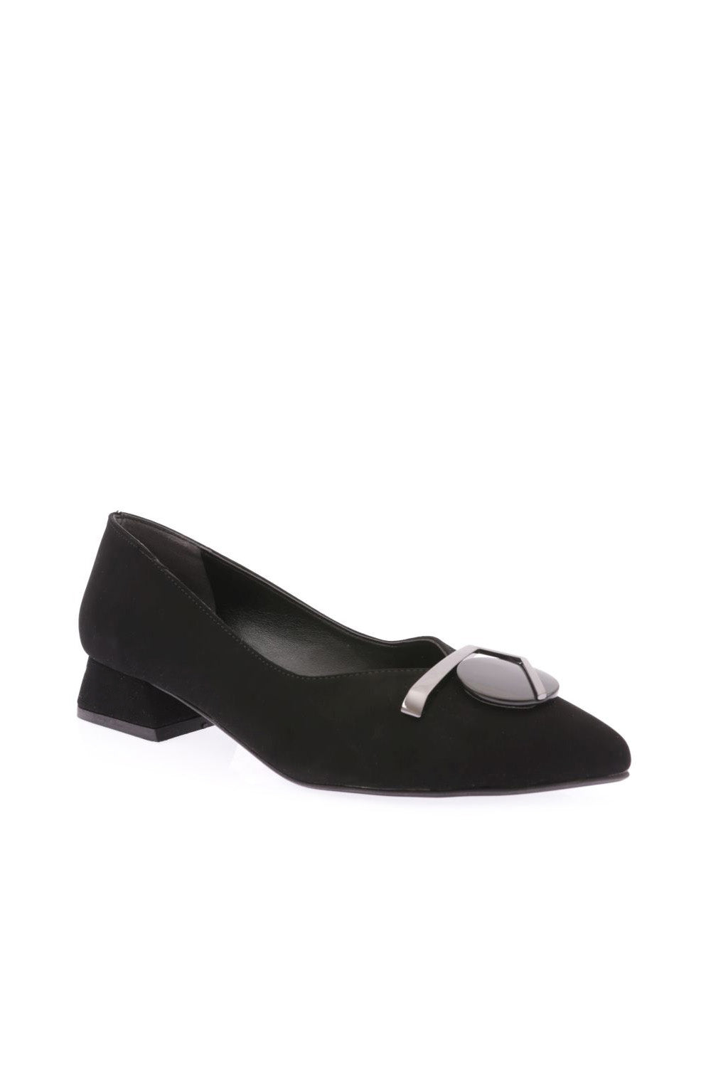 Kadın Sivri Burun Önü Yuvarlak Metal Detay Toka Alçak Topuk Ayakkabı 211232328