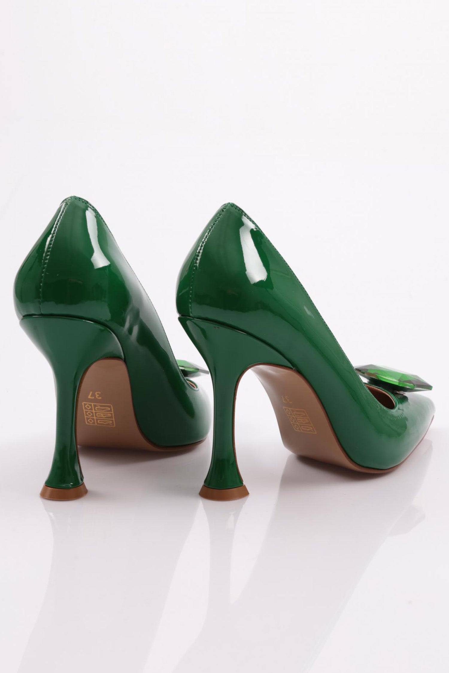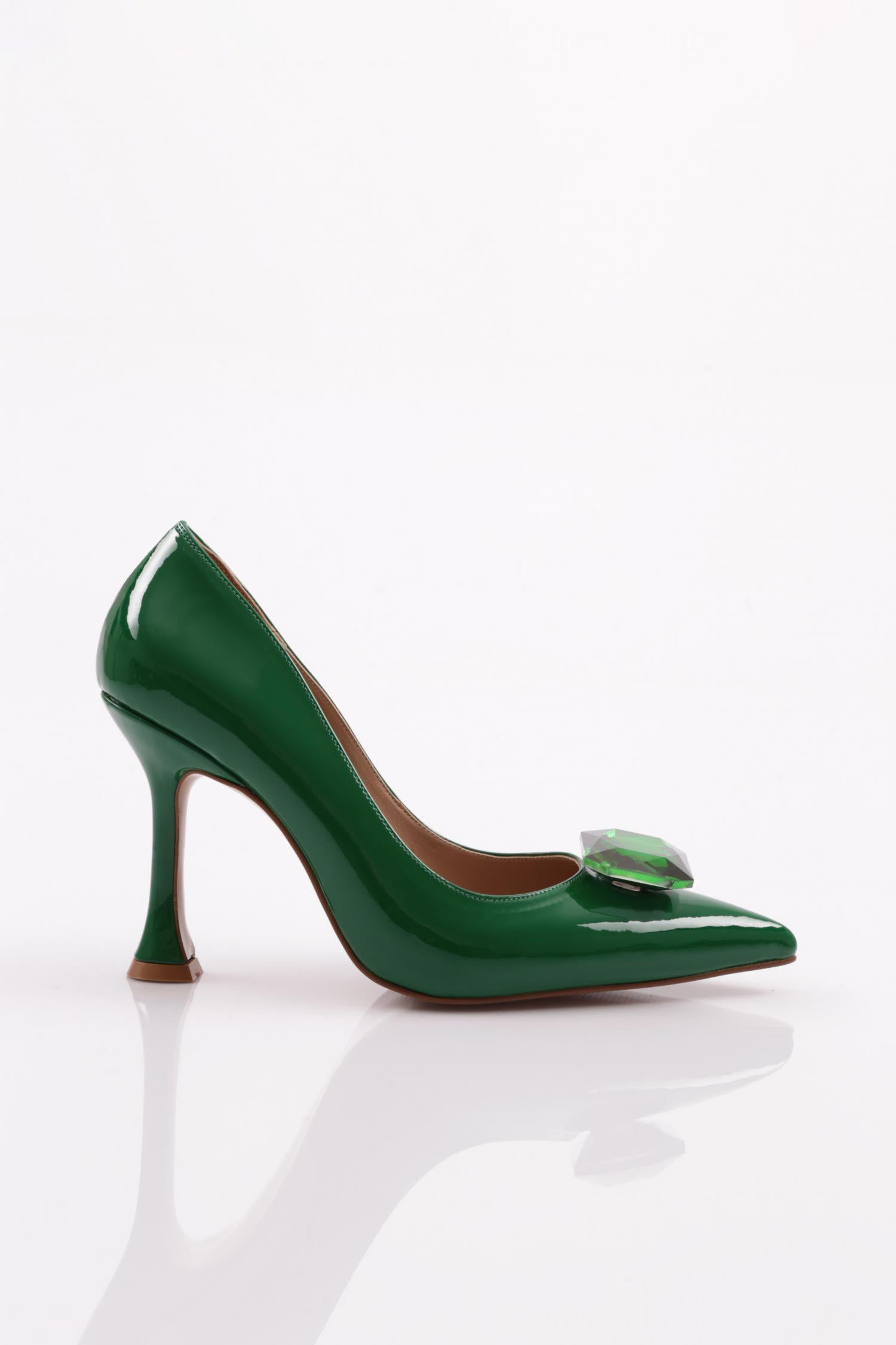 Kadın Sivri Burun Parmak Dekolteli Büyük Kristal Taşlı Topuklu Ayakkabı 561421085
