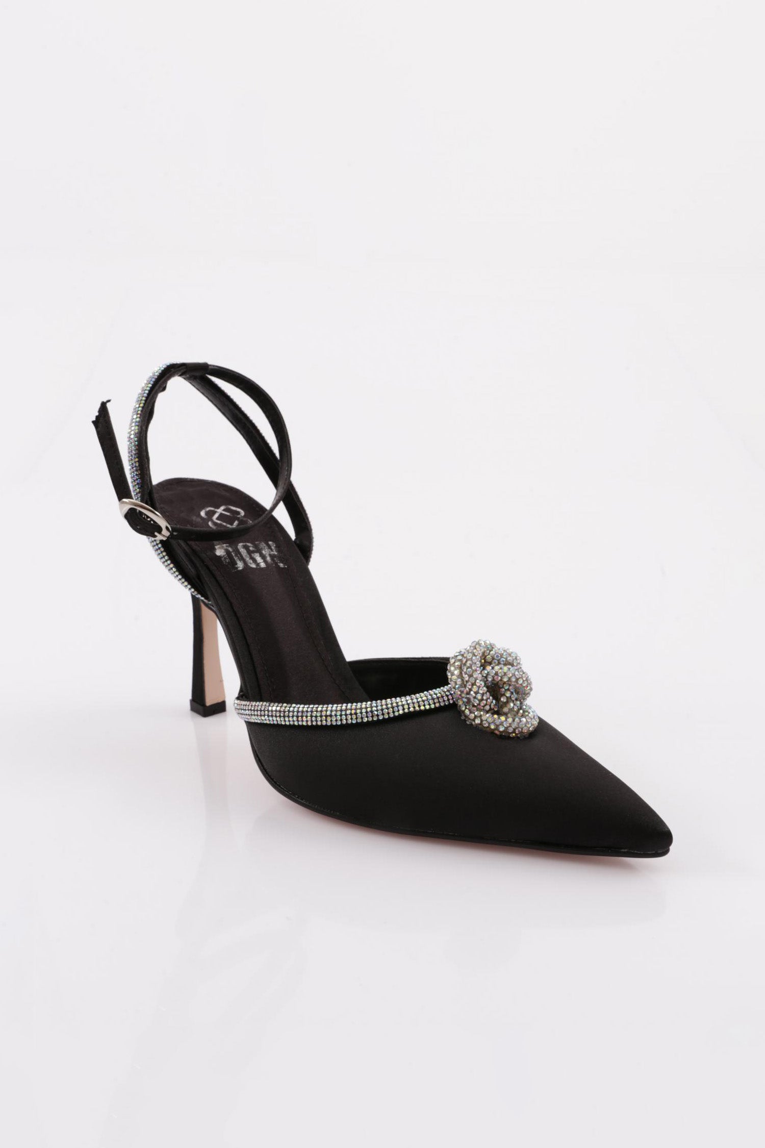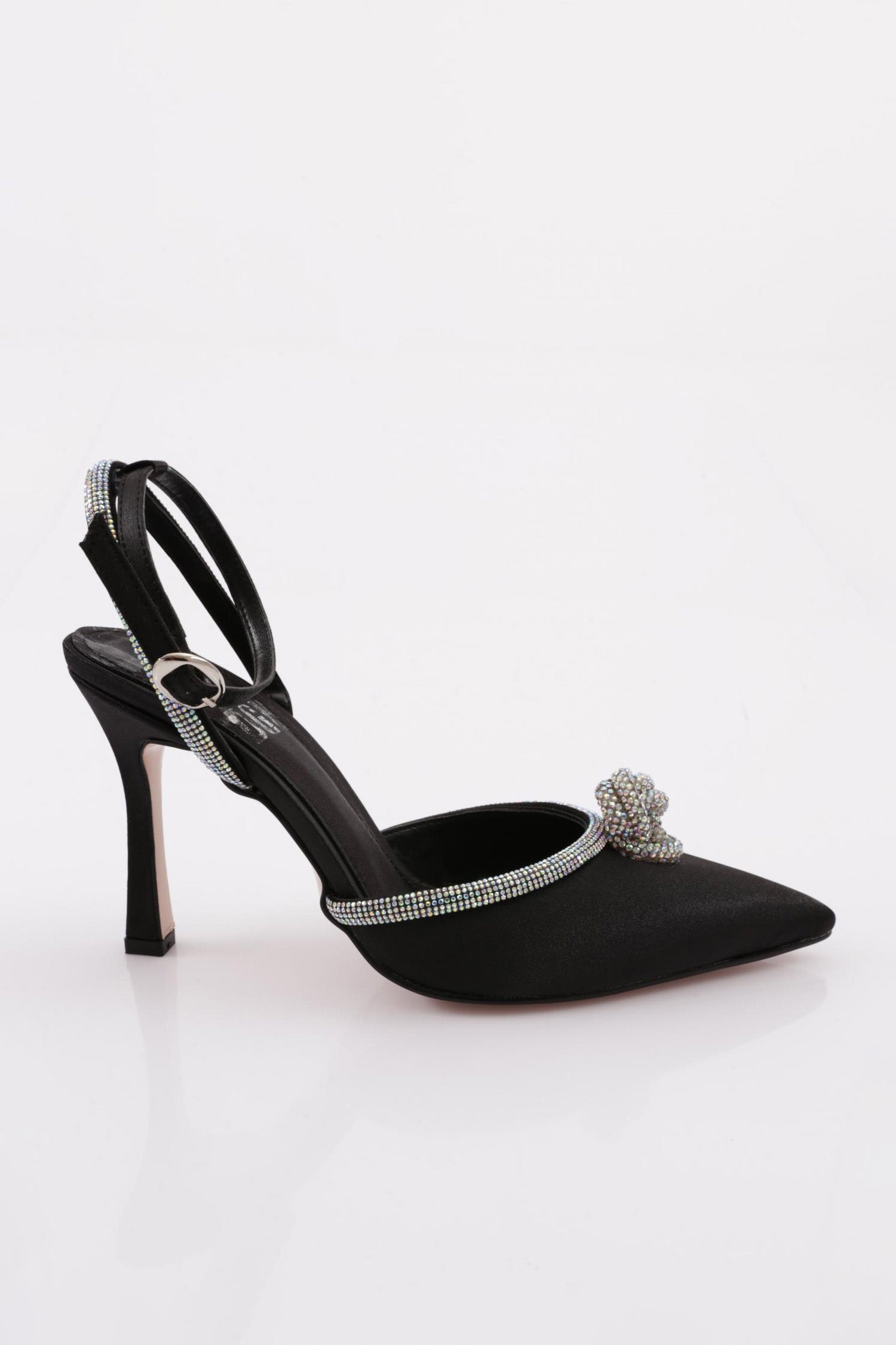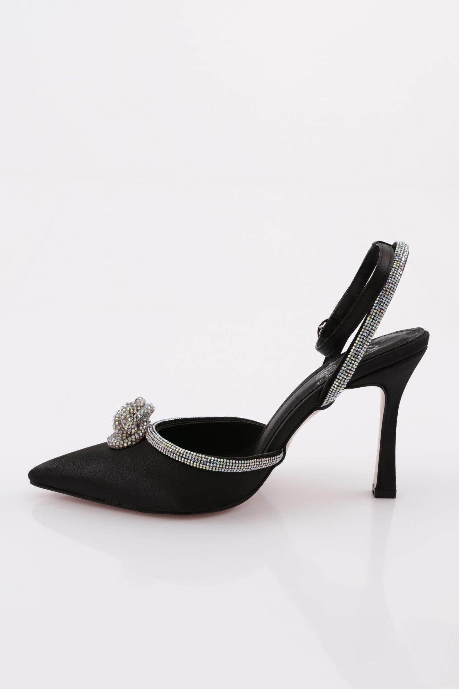 Kadın Sivri Burun Parmak Dekolteli Sılver Taş Detaylı Yanlar Açık Bilekten Bağlı Topuklu Ayakkabı 8818535