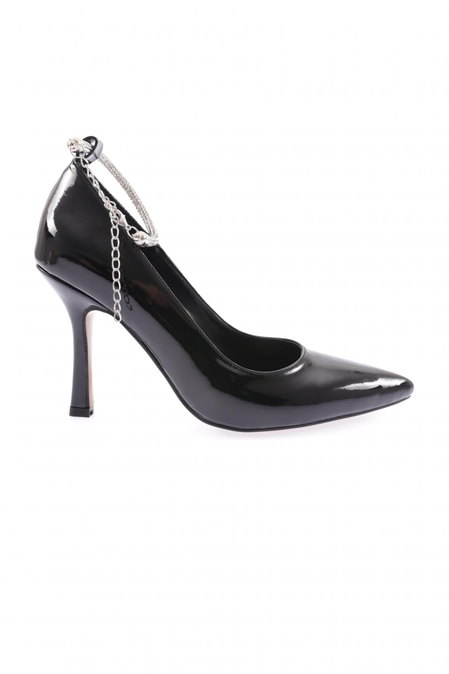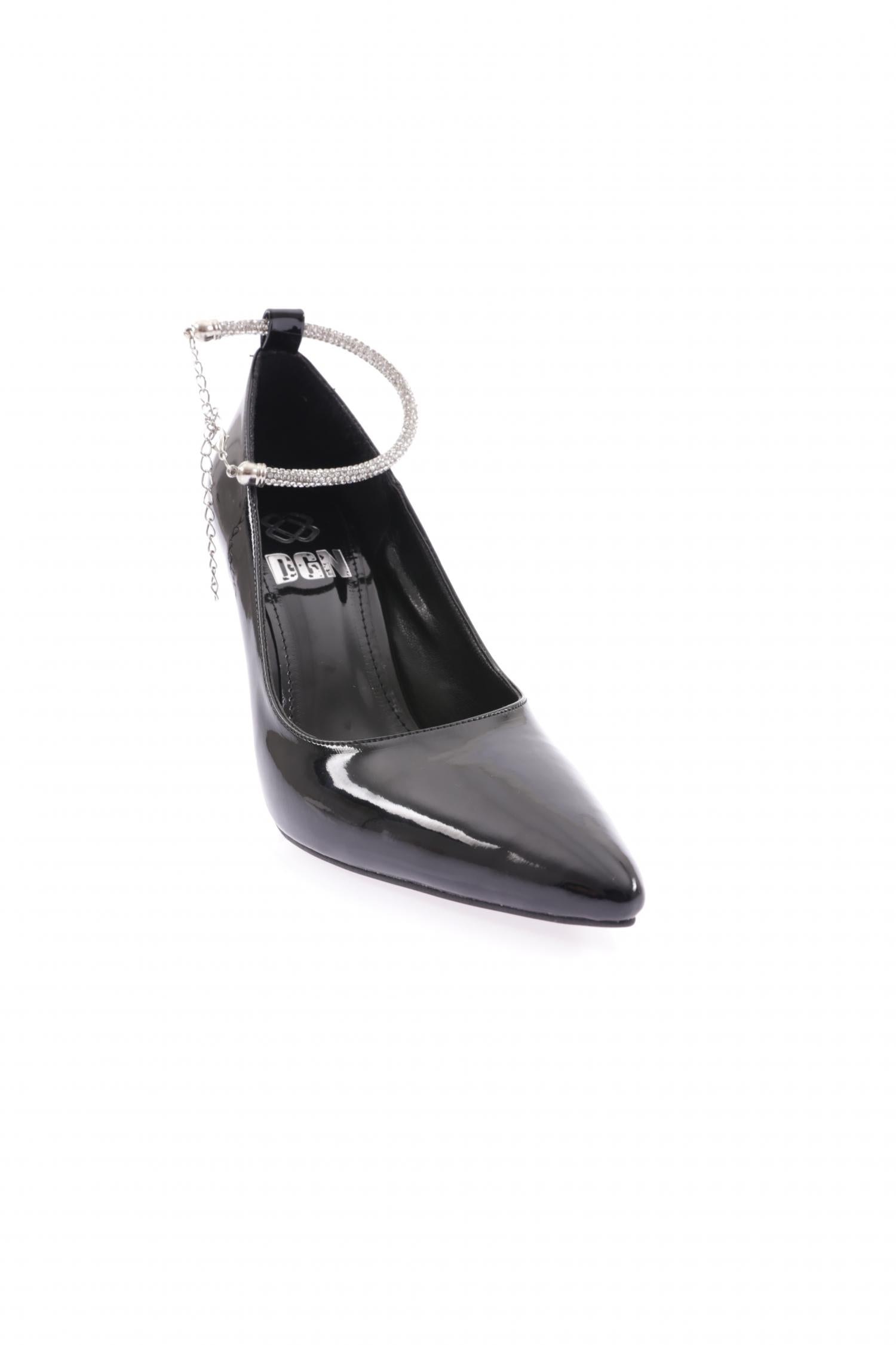 Kadın Sivri Burun Parmak Dekolteli Taşlı Halhal Detaylı Topuklu Ayakkabı 6871535