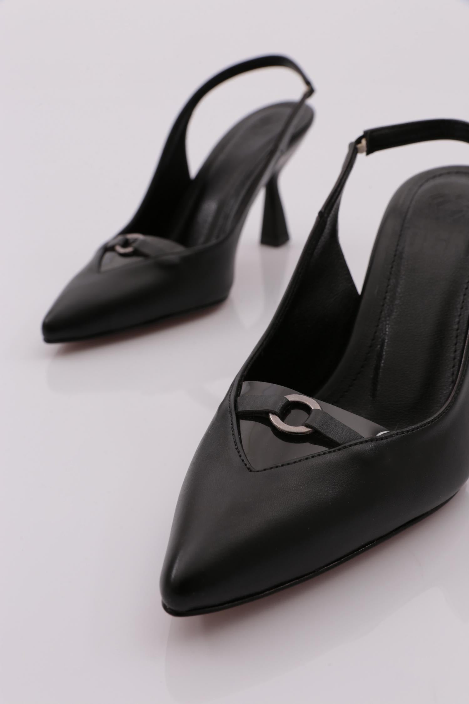 Kadın Sivri Burun Şeffaf Detaylı Aksesuarlı Topuklu Ayakkabı 143286