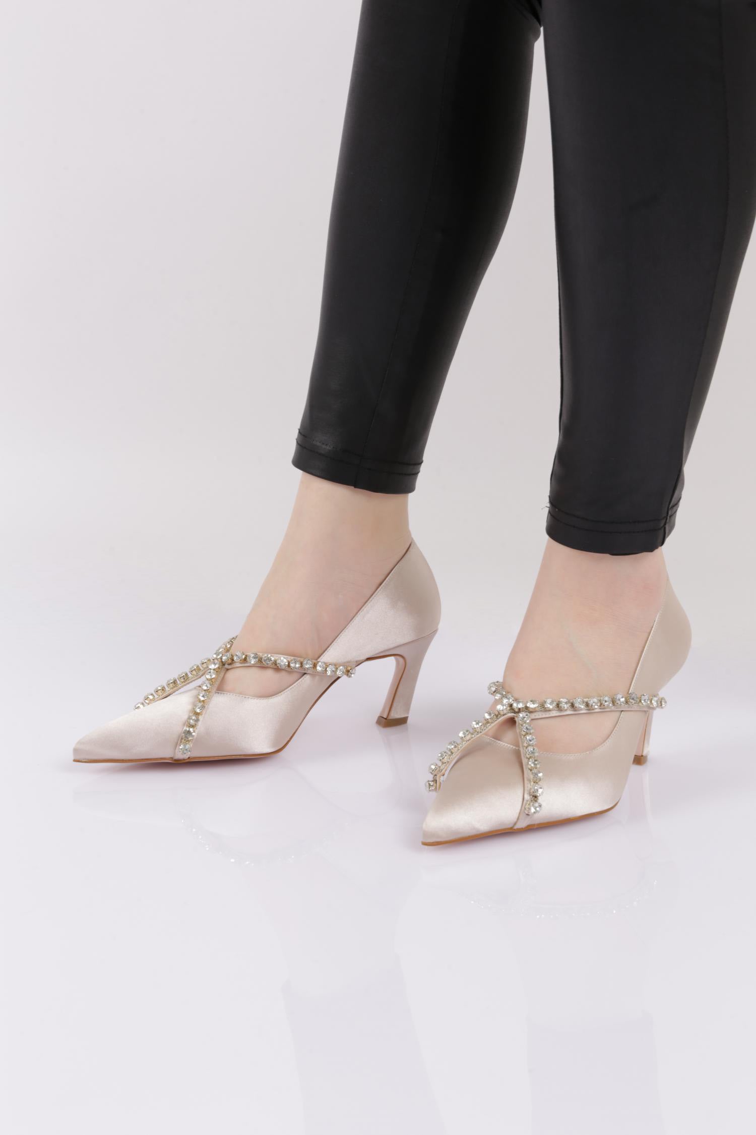 Kadın Sivri Burun Üstten Çapraz İncili Topuklu Ayakkabı 284621085
