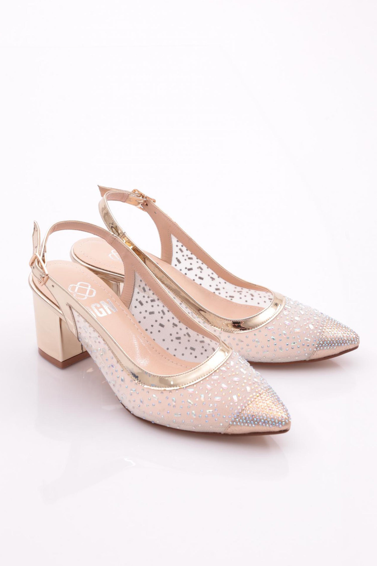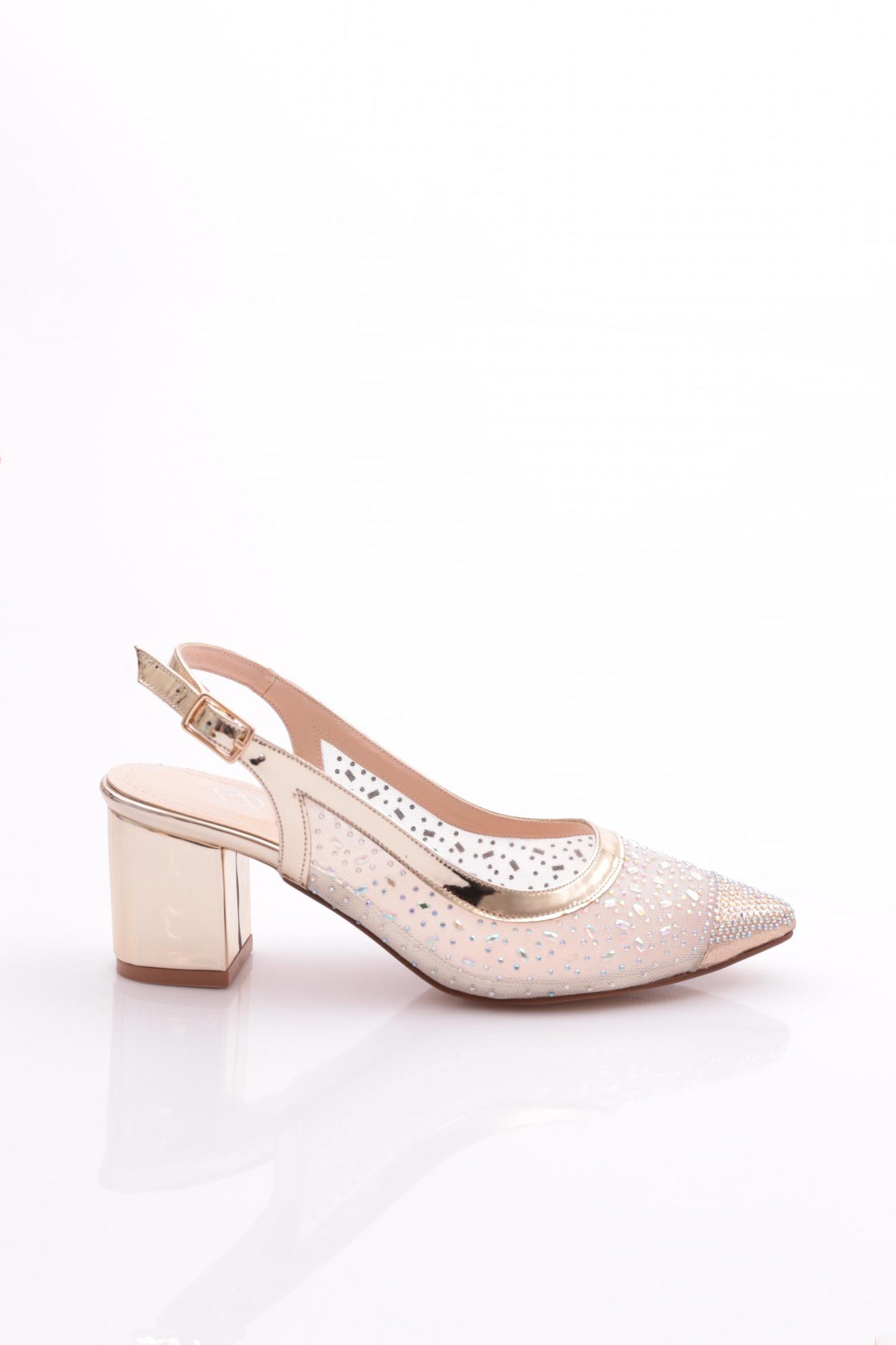 Kadın Sivri Burun Yanları Transparan Arkası Kemerli Küt Topuklu Ayakkabı 212562621