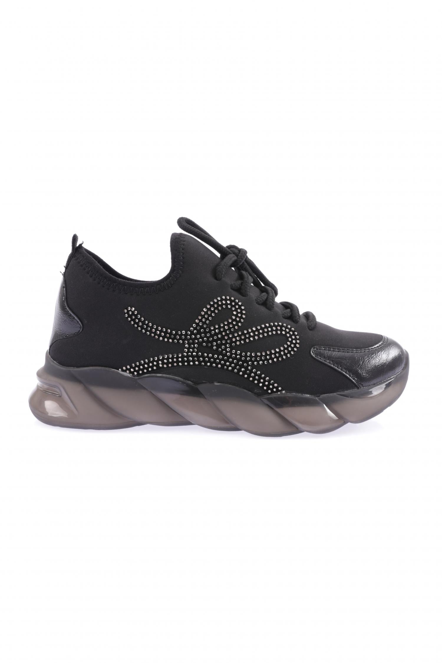 Kadın Strech Detaylı Silver Taşlı Bağcıklı Sneakers Ayakkabı 3293137