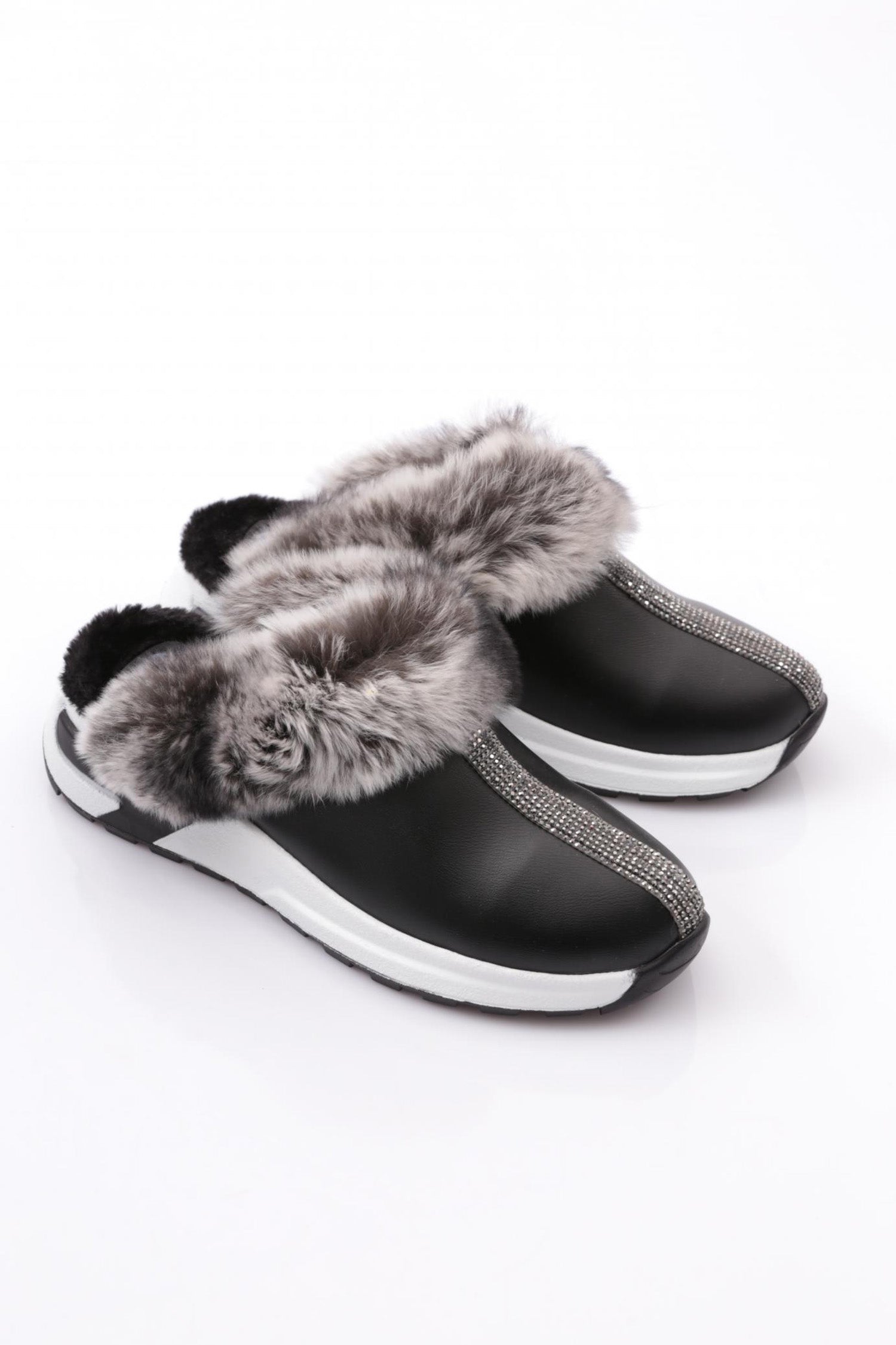 Kadın Üstü Kürklü Taş Şeritli Terlik 133141