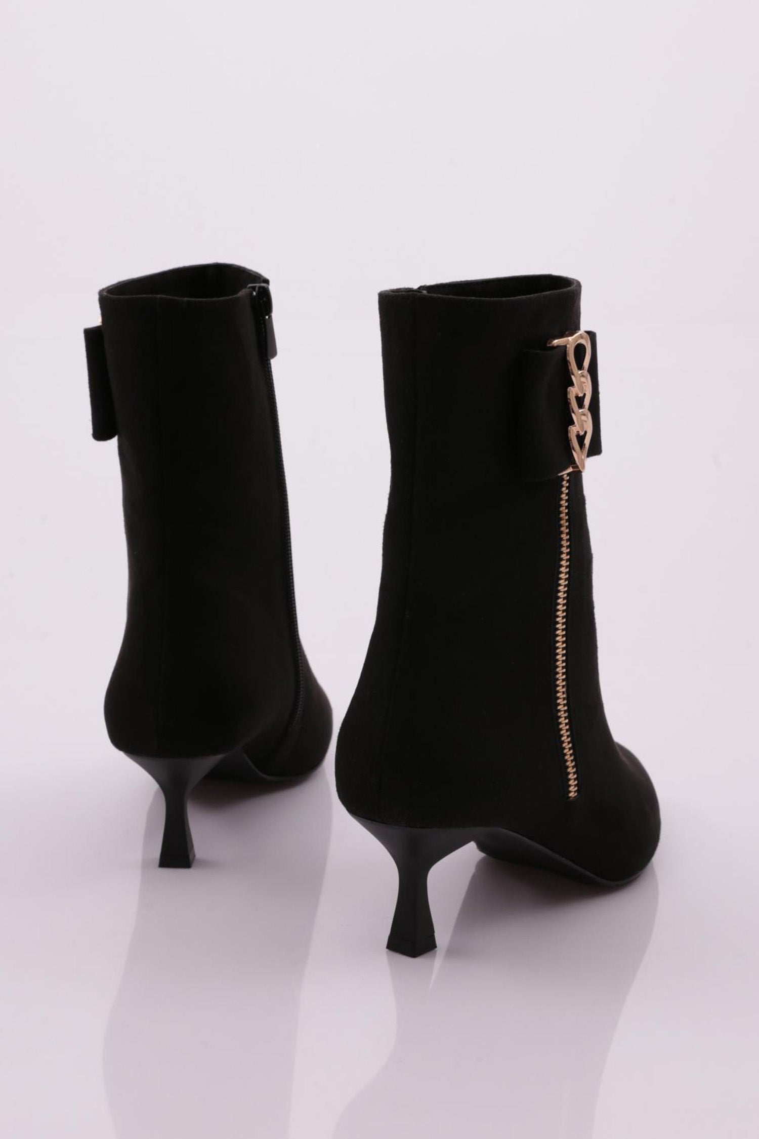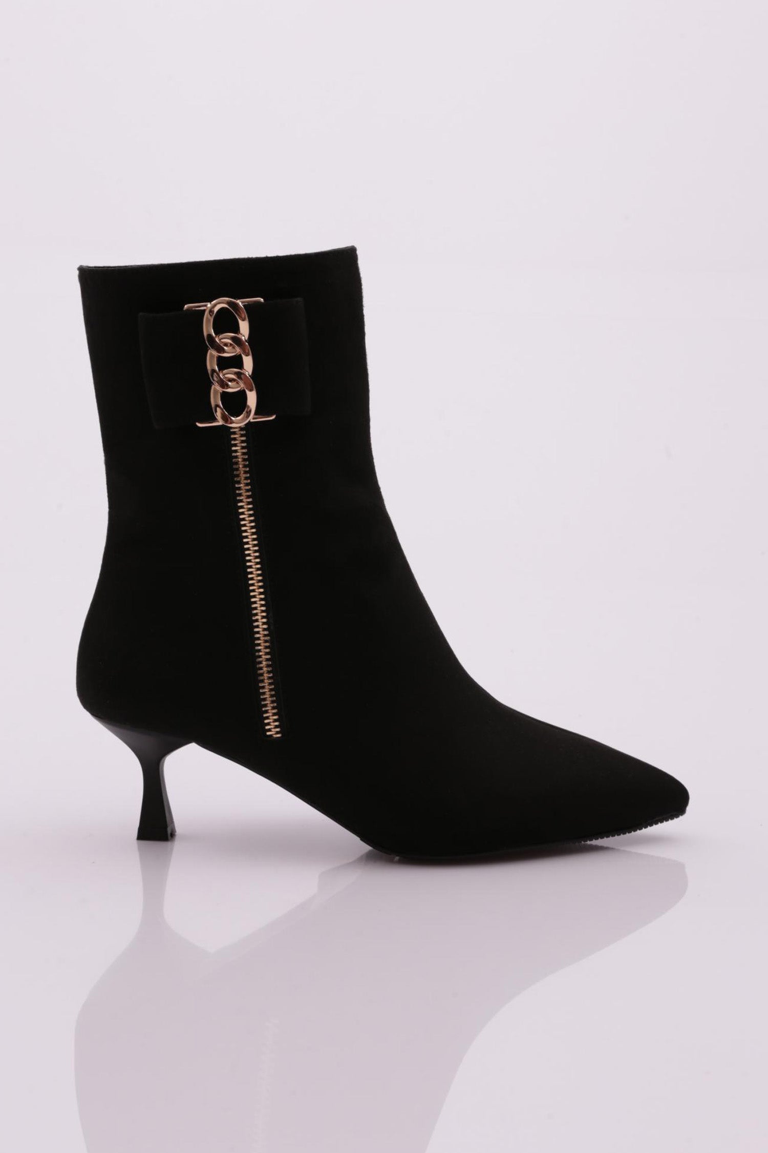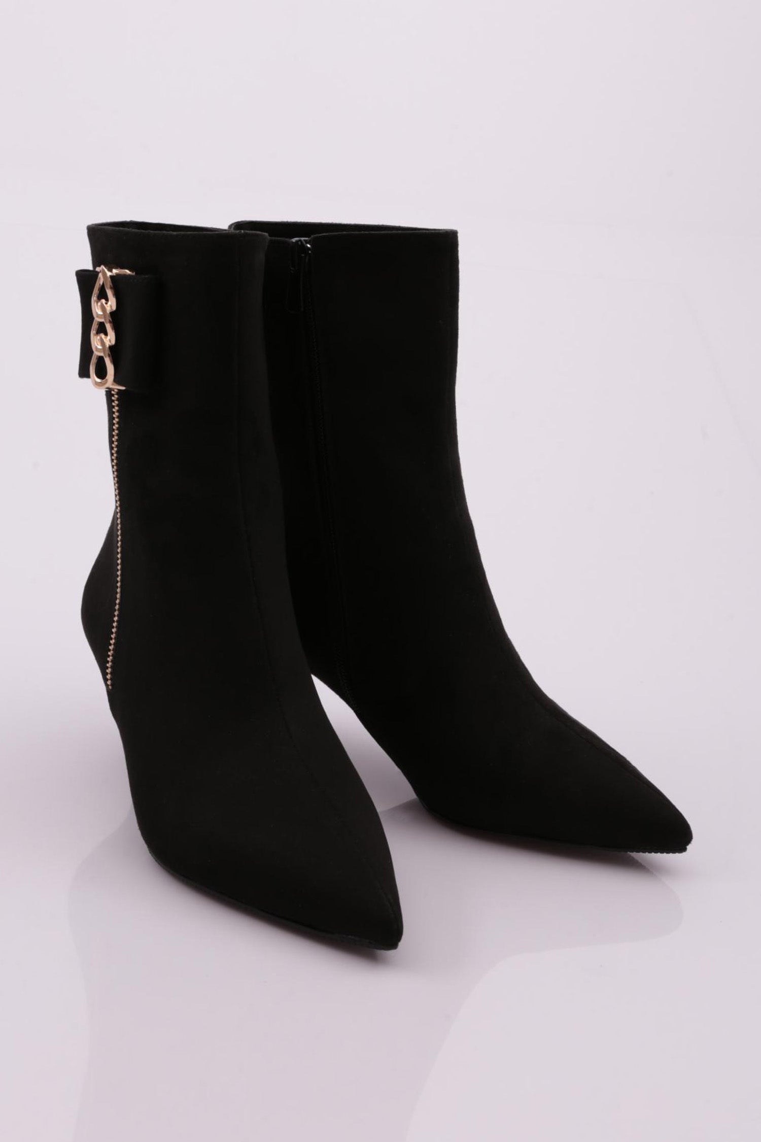 Kadın Yanları Fermuarlı Metal Aksesuarlı Sivri Burun Topuklu Bot 53112821