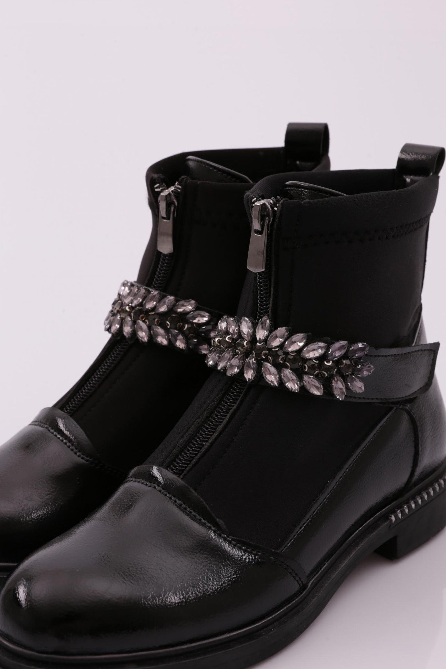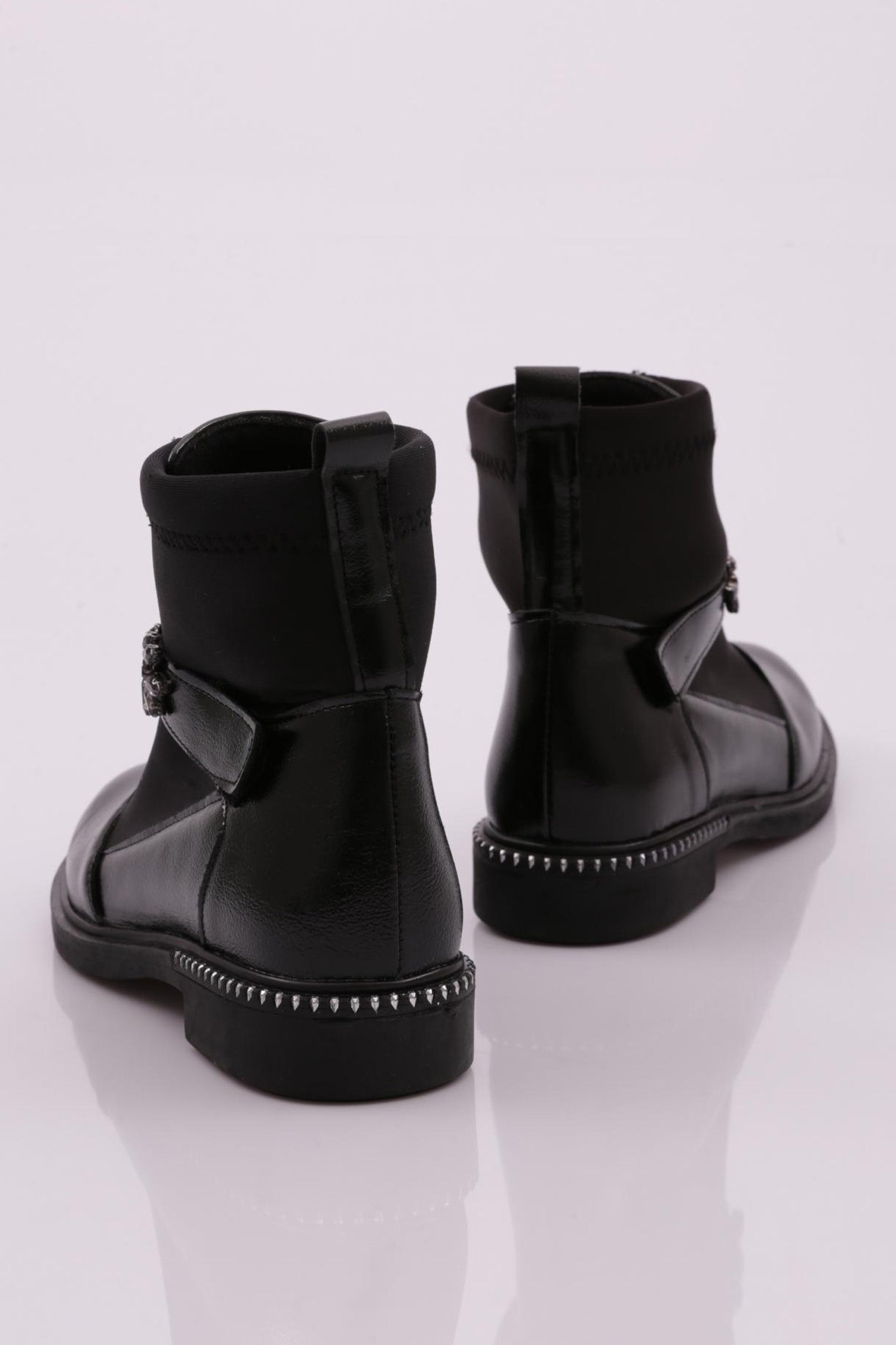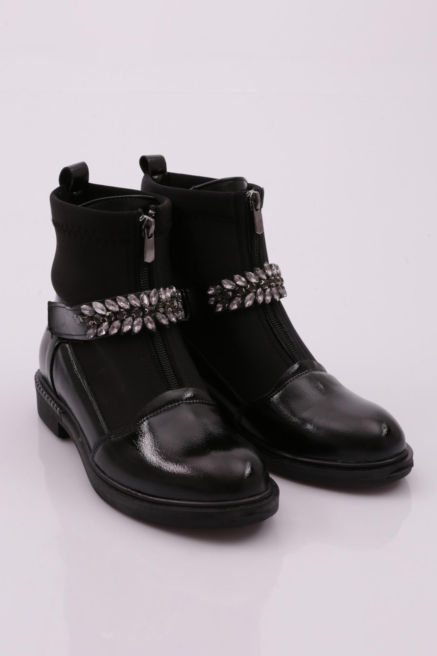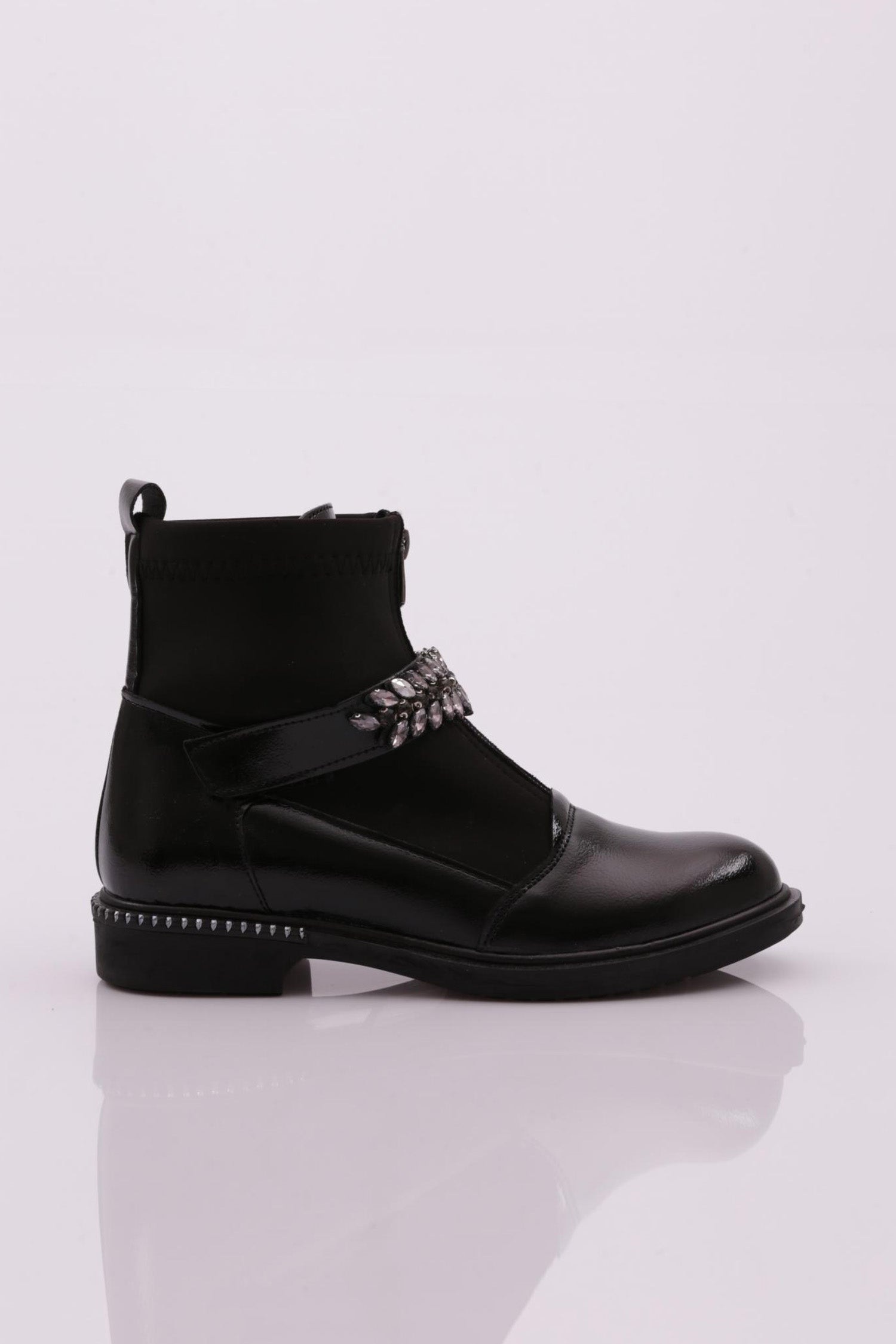 Kadın Yuvarlak Burun Önü Fermuarlı Taşlı Kemerli Bot 26235332132142322
