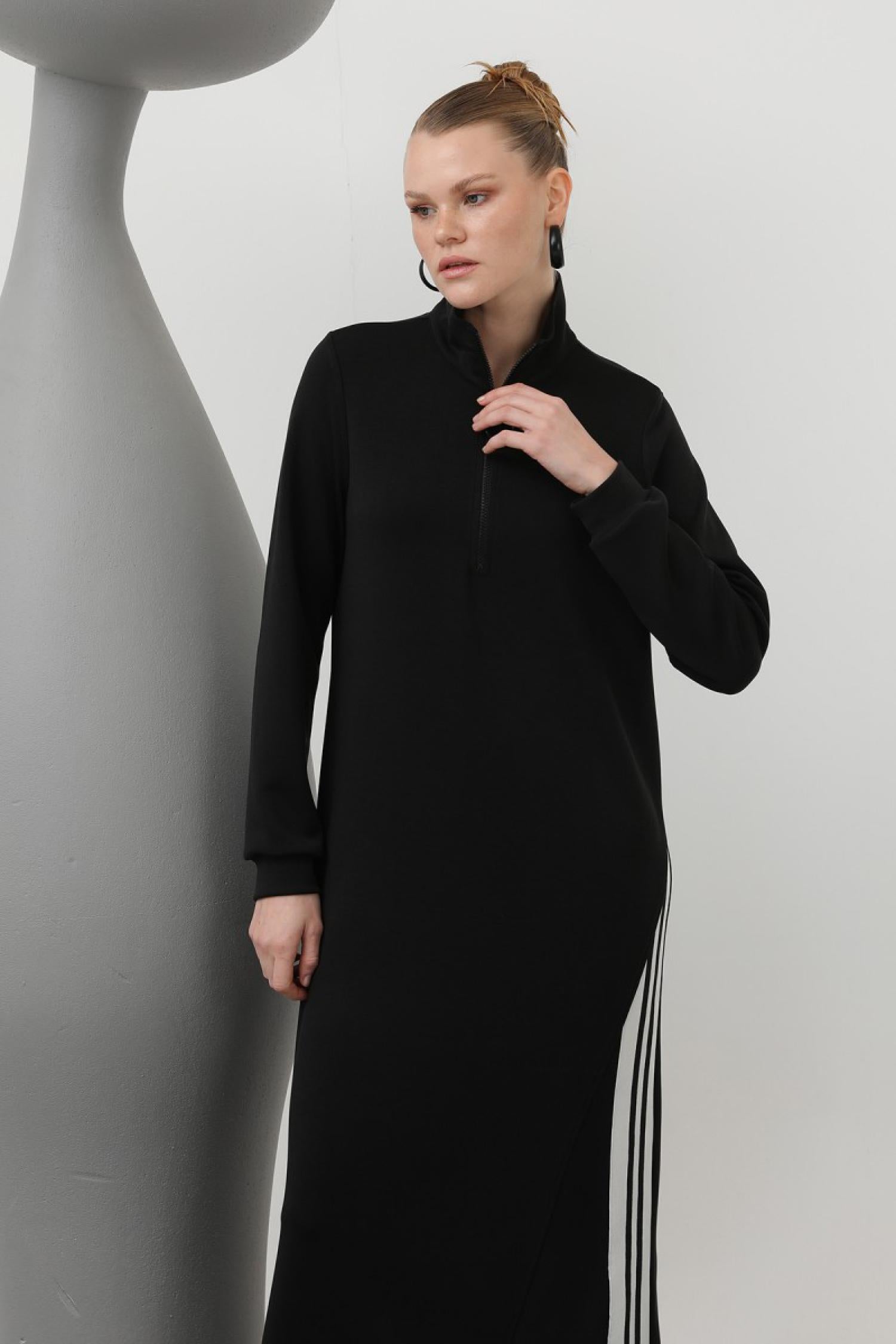 Loreen 20600 Kadın Tiktak Detaylı Fermuarlı Modal Elbise