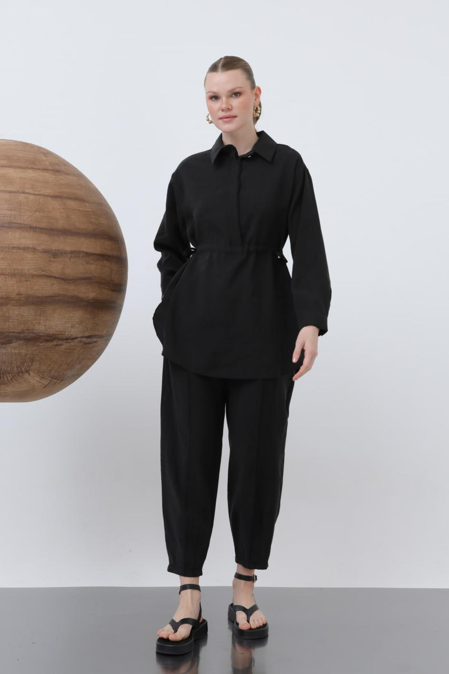 Loreen 20610 Kadın Beli Büzgülü Gizli Patlı Pantolonlu Takım
