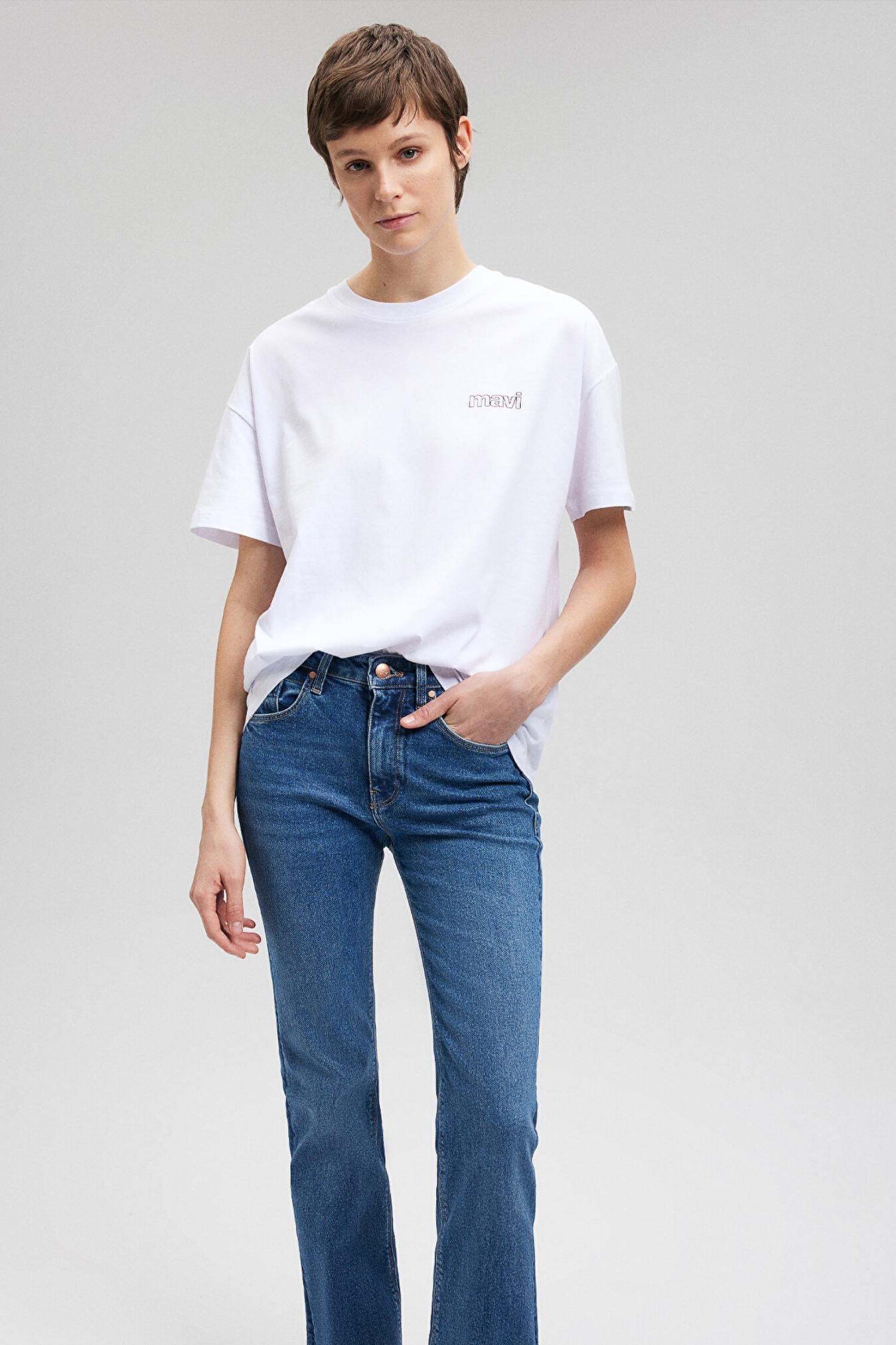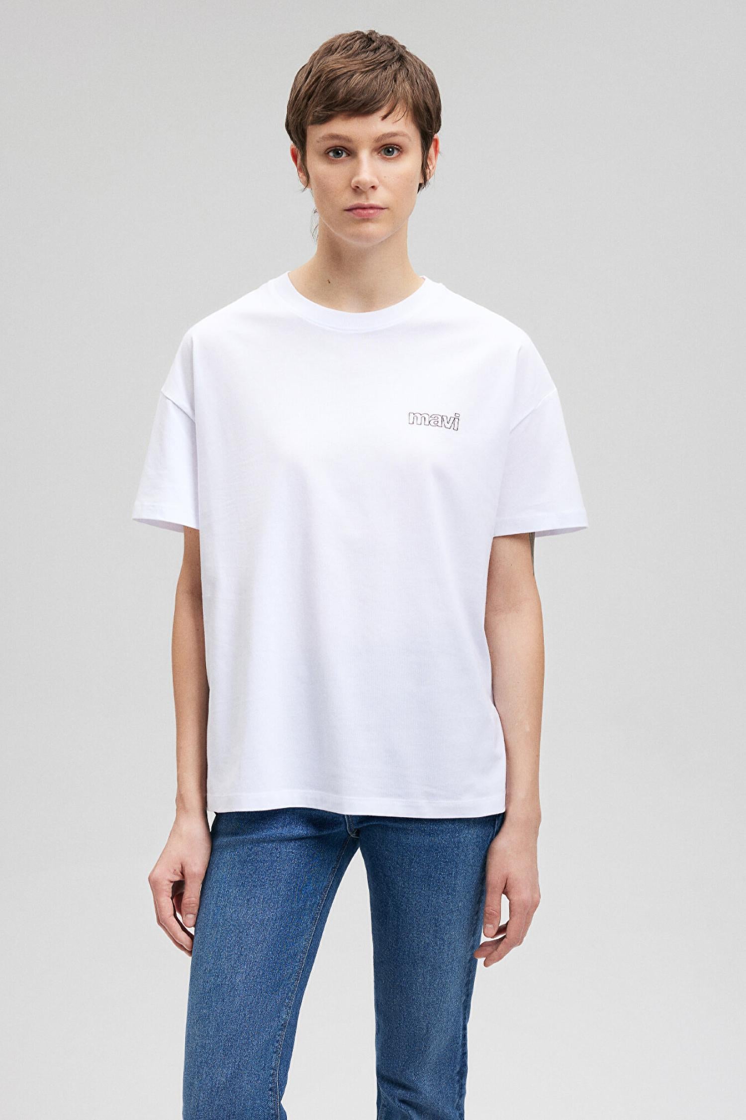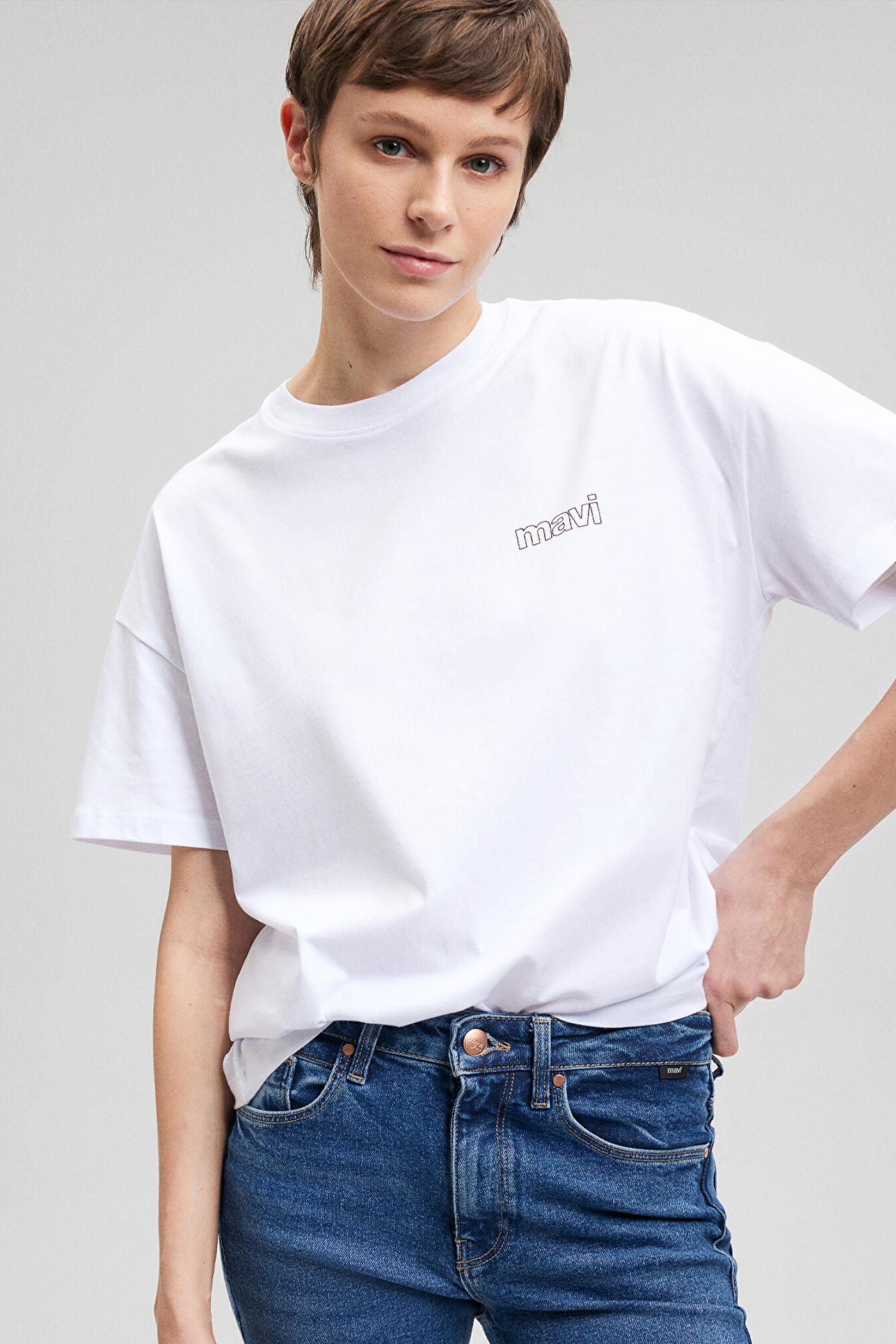 Mavi M1611309-620 Kısa Kollu Penye Beyaz Ss Kadın T-Shirt