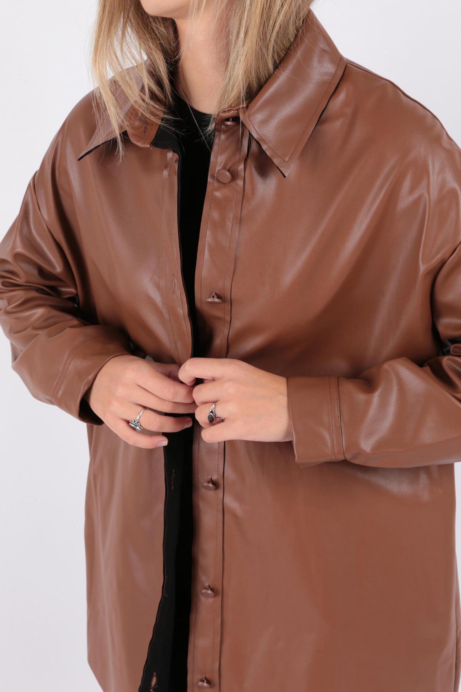 Puane 10361-Fw Kadın Deri Gömlek Ceket