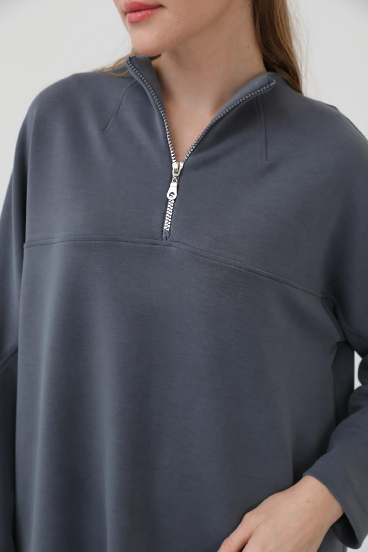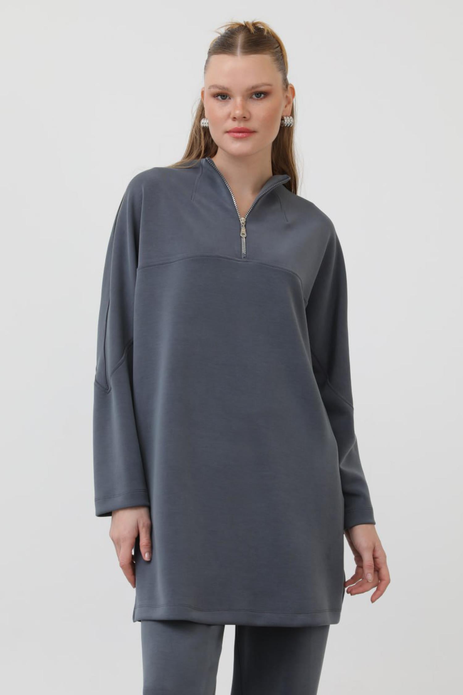 Puane 10611 Kadın Önü Fermuar Detaylı Modal Tunik