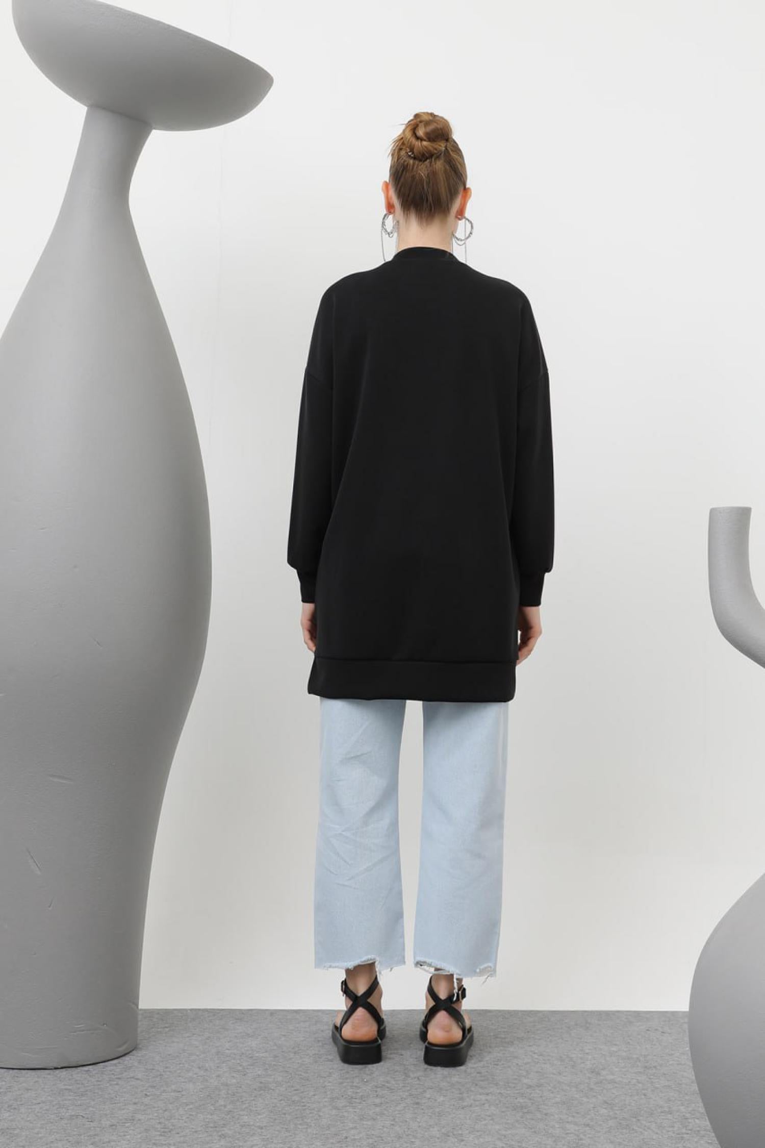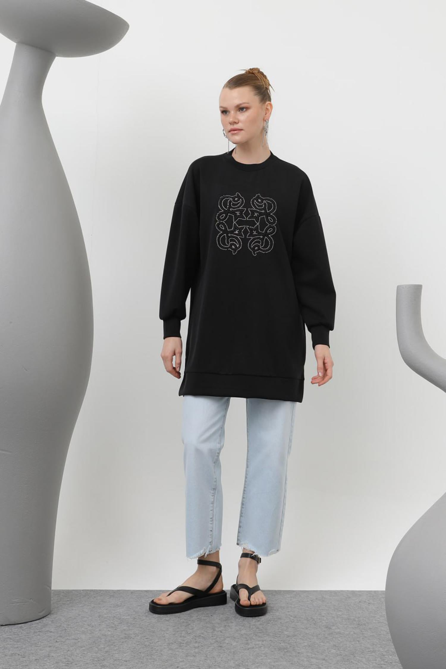 Puane 10612 Kadın Önü Yapıştırma Taş Detaylı Tunik