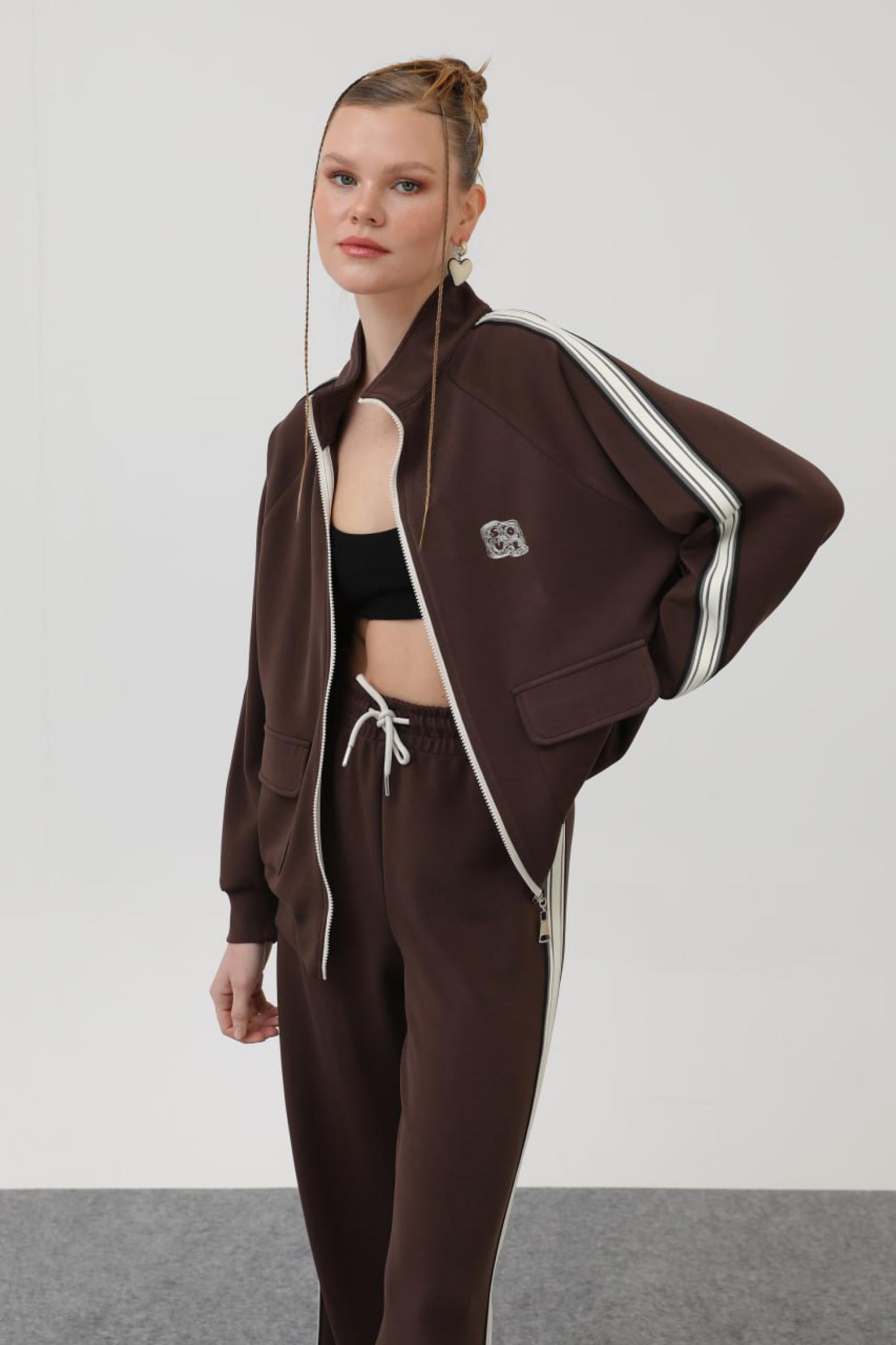 Soul 32143 Kadın Nakış Detaylı Şeritli Eşofman Takım