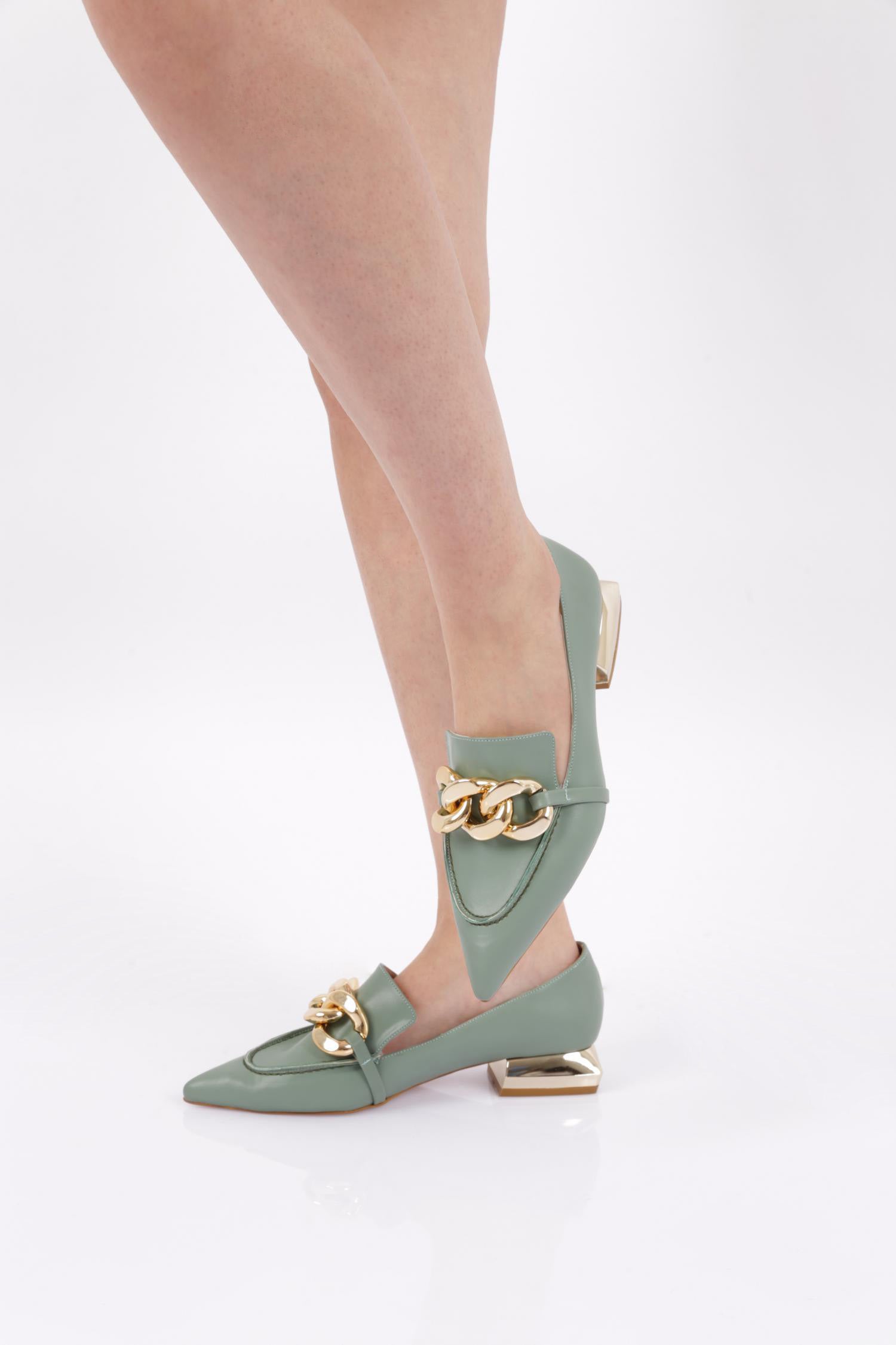 Y Kadın Sivri Burun Tüm Üstten Zincirli Ayakkabı 2431021085