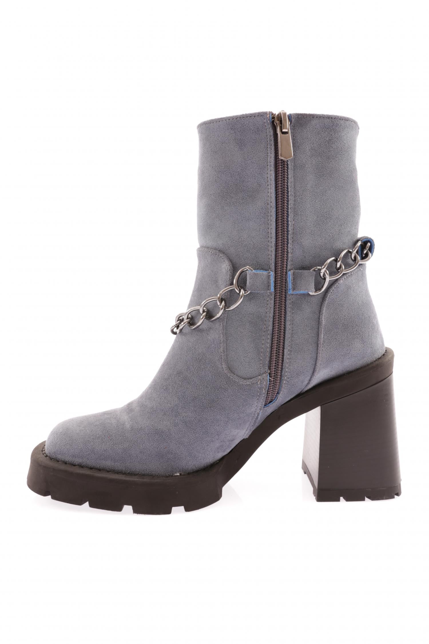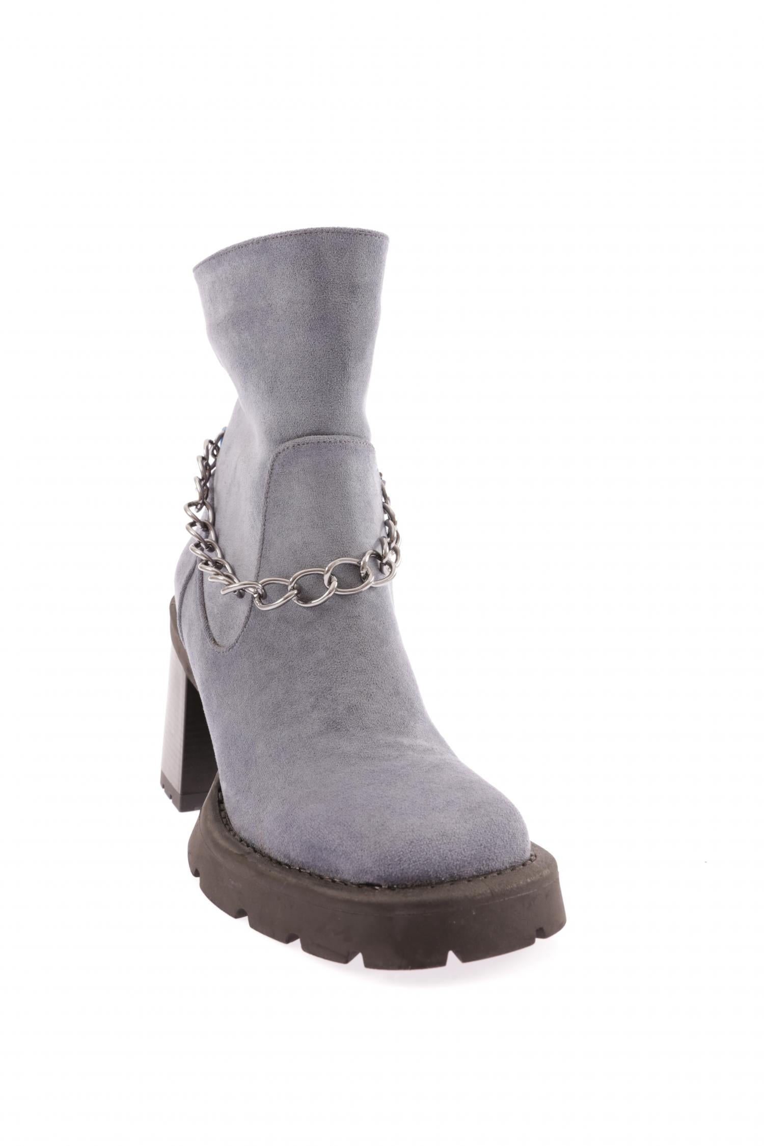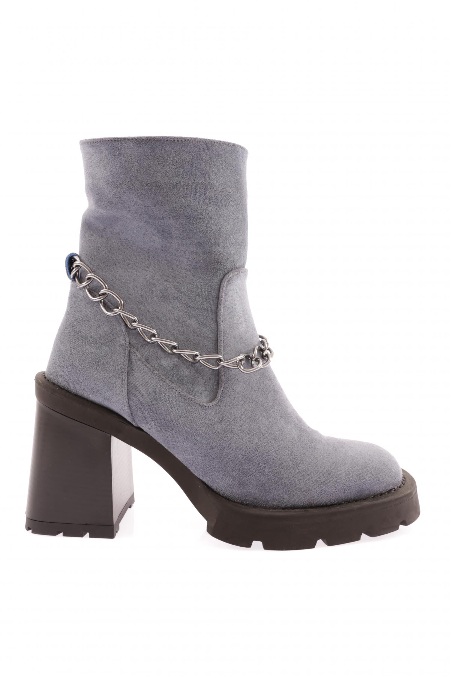 Yuvarklak Burun Zincir Detaylı Kadın Topuklu Bot 26543285